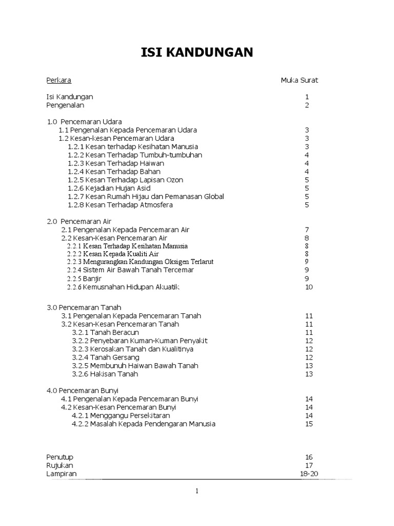 Ahli Kumpulan Laura Brown Nor Hana Bt Sani from slidetodoc.com Pencemaran alam sekitar boleh didefinisikan sebagai sesuatu perkara yang mengotorkan alam sehingga boleh menjejaskan ekosistem di muka bumi ini. Berikut dikongsikan adalah maklumat tentang kesan guna tanah terhadap alam sekitar mengikut aktiviti pertanian boleh memberi kesan negatif kepada alam sekitar adalah iaitu Penutup pencemaran alam sekitar memberi banyak kesan yang sangat buruk terhadap dunia pada masa kini. Pencemaran sungai mempengaruhi kehidupan makhluk hidup yang ada di dalamnya. Digunakan ialah tinjauan pendapat dengan pemilihan responden daripada. Dalam pemikiran, apabila berlaku pencemaran bunyi ini akan menyebabkan kerosakan gegendang. Masalah pencemaran bunyi ini mencerminkan kadar. Pengguna sabah terhadap isu alam sekitar di pelbagai peringkat.